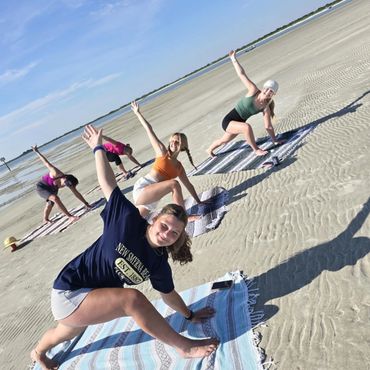 After savasana, stay, sip, and celebrate with mimosas on the sandbar, because relaxation should always come with a little sparkle ✨